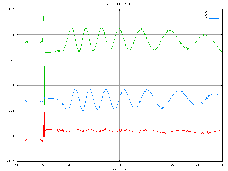 (Note: The data has been converted to engineering units using the manufacturers specifications of a 2.5V offset and 1V/Gauss sensitivity.)